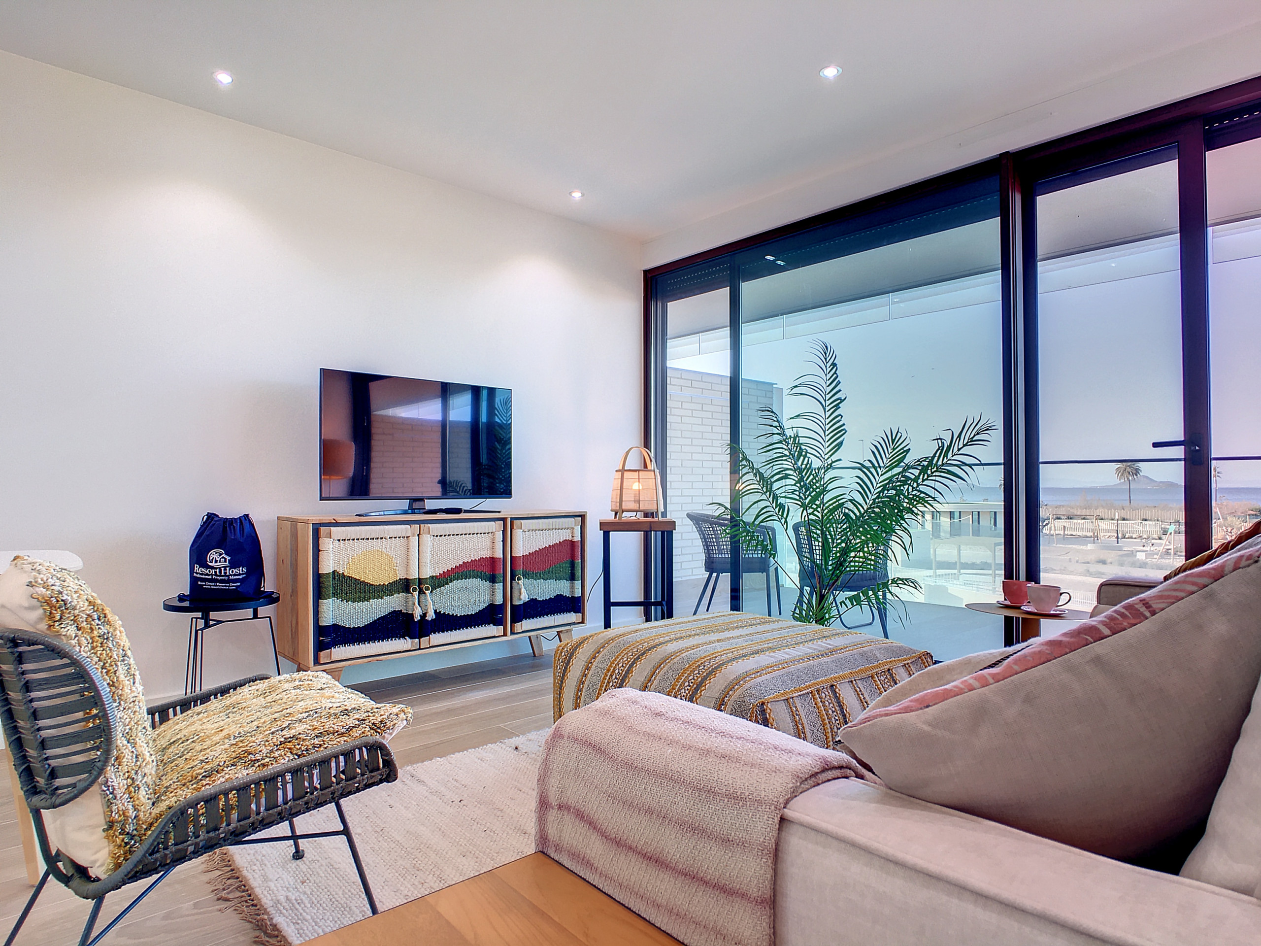 The apartment has 2 very spacious terraces, an open-plan living area with patio doors out onto the balcony where you can, eat out or relax and enjoy the fantastic views of the complex, sea and of Cabo de Palos Lighthouse. The other is a kitchen terrace that is south facing so catches the sun all year round where you can enjoy the views of Calblanque nature park to the south.